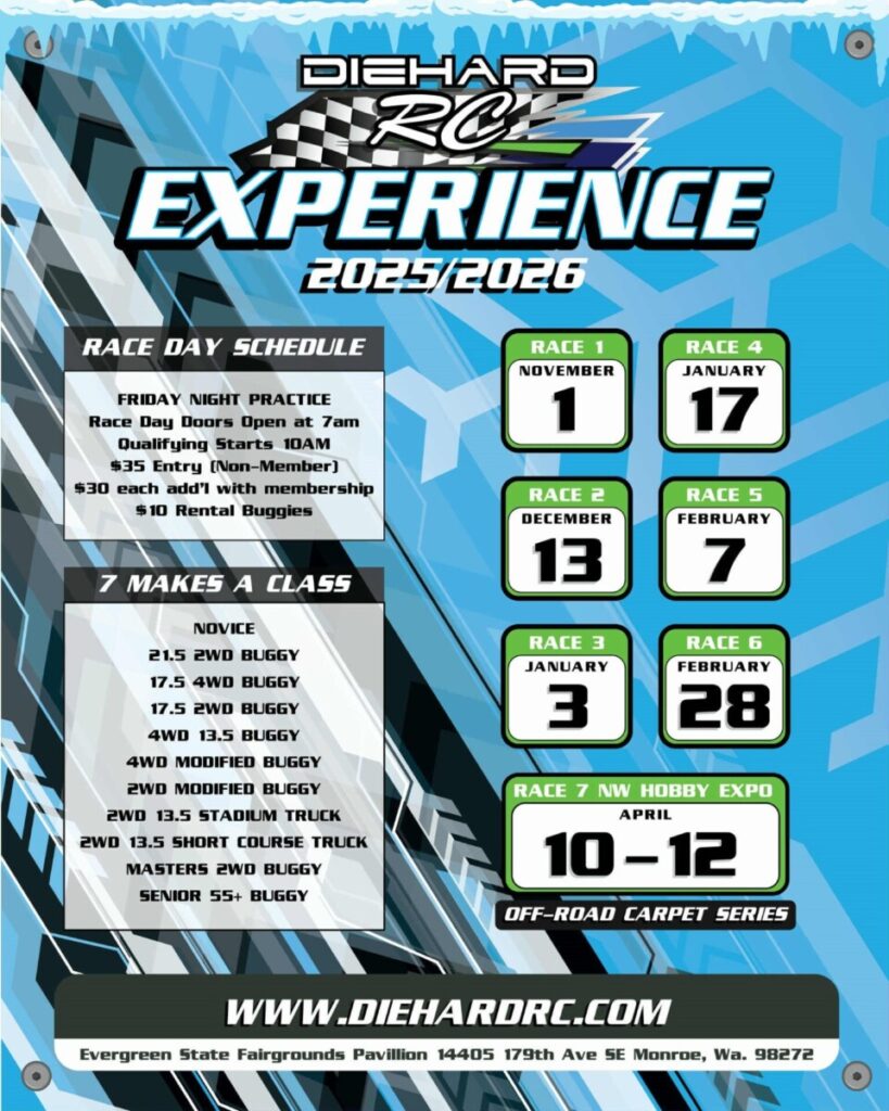 DieHard RC is sponsored by Team Associated with B6.4 buggies that we offer as our rental cars. If you would like to try out RC racing come out to any of our scheduled race days.